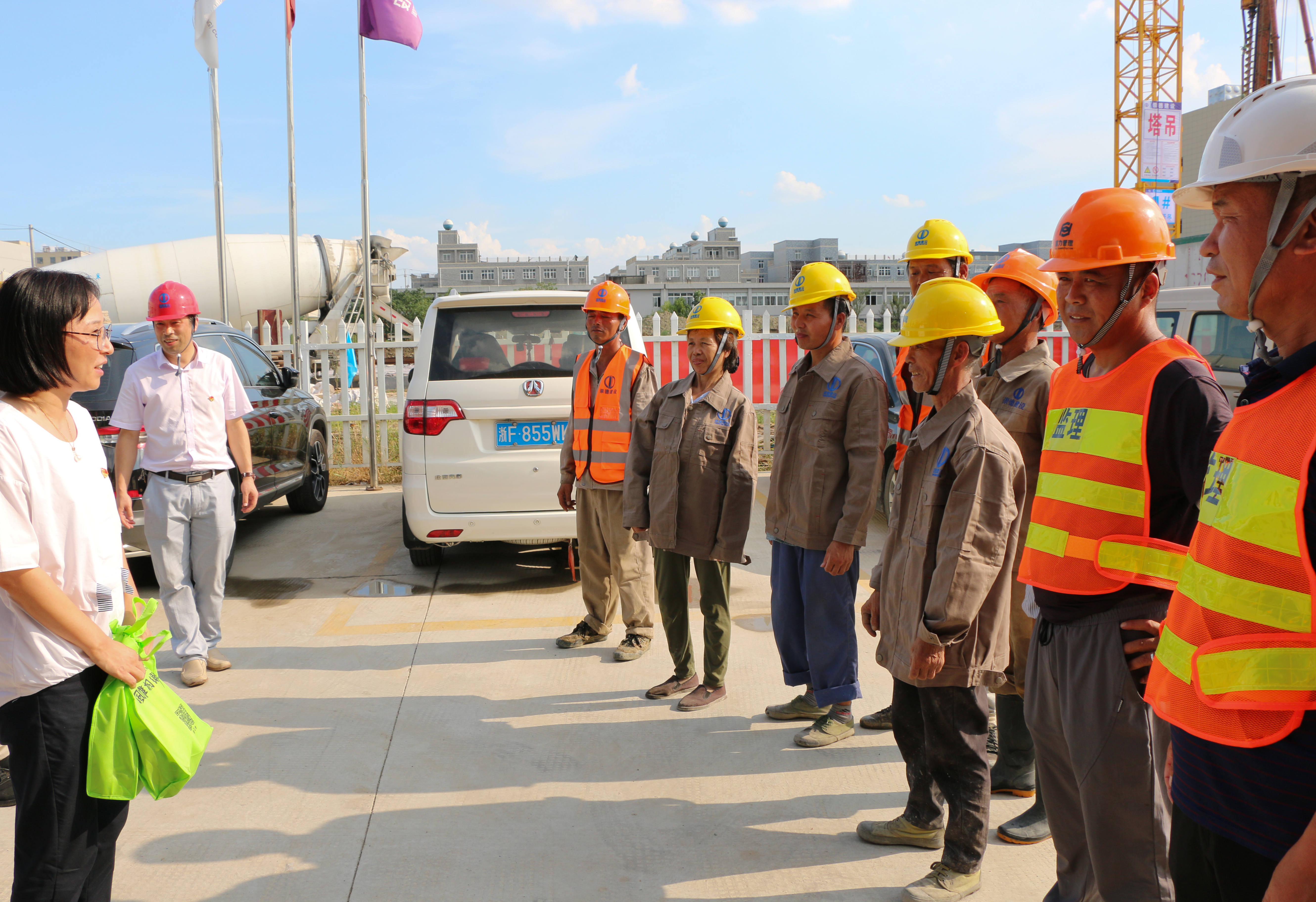 桐鄉市總工會副主席吳霞萍一行四人到崇德建設工地慰問作業職工