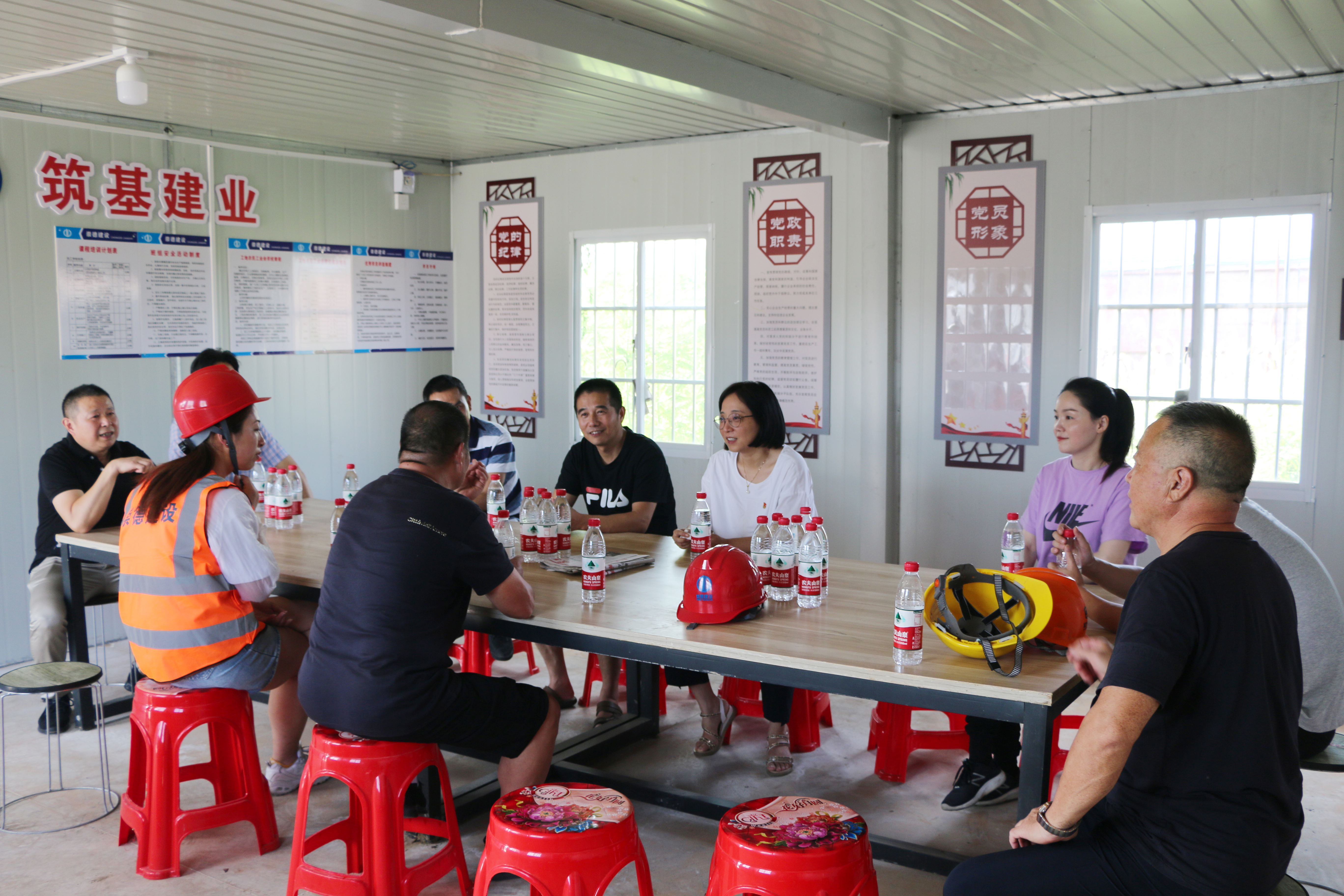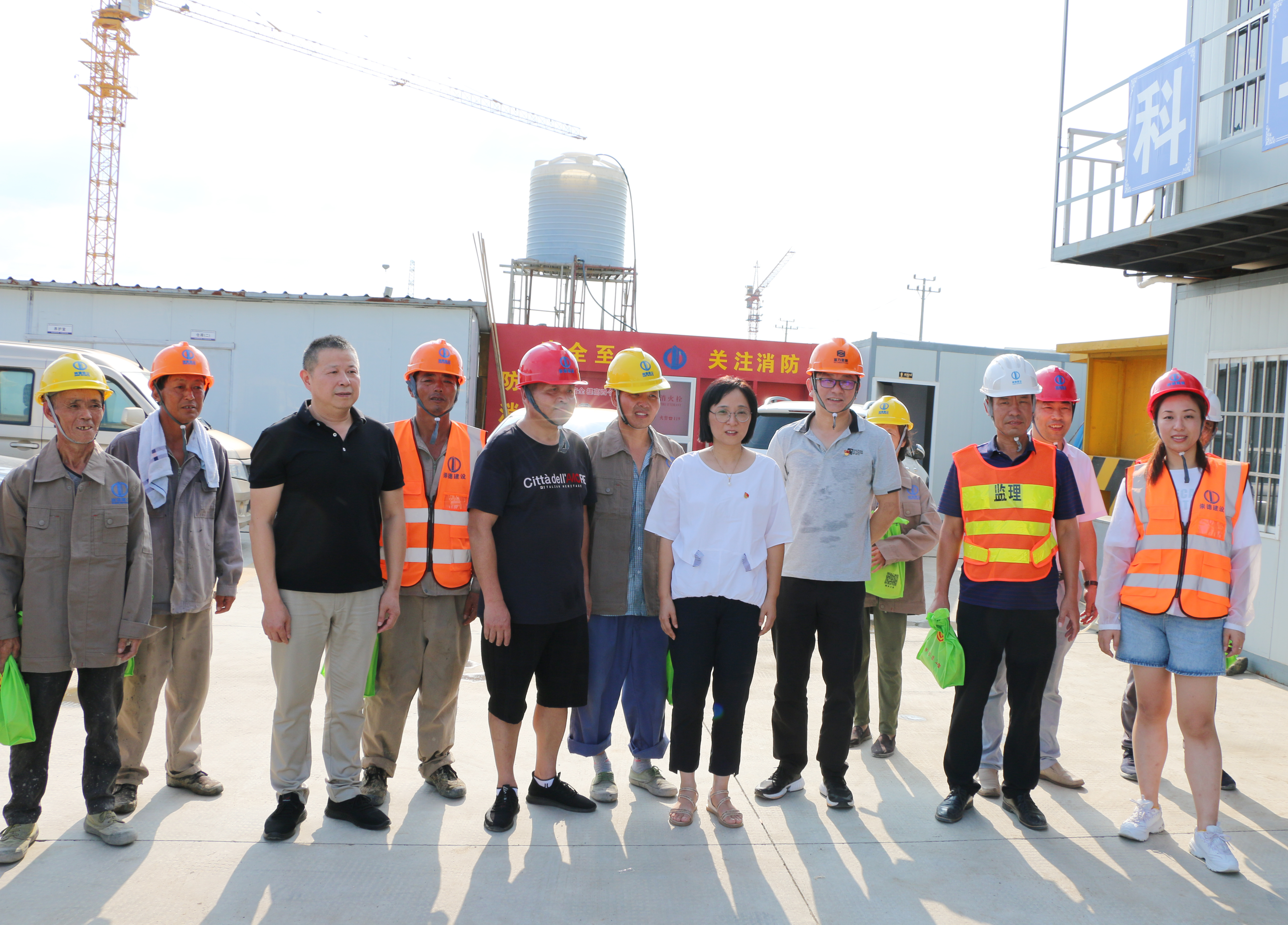 炎炎夏日,酷暑難耐。8月14日下午,桐鄉市總工會副主席吳霞萍一行四人,在崇德建設工會、質安部、技術部、監理單位等負責人陪同下,帶著關懷和清涼慰問品走訪了崇德建設愛嘉紡織(年產650萬米針織高檔面料新建項目)工程。看望并慰問一線建筑工人,讓堅守在高溫一線的工人們感受到了工會組織的關愛。