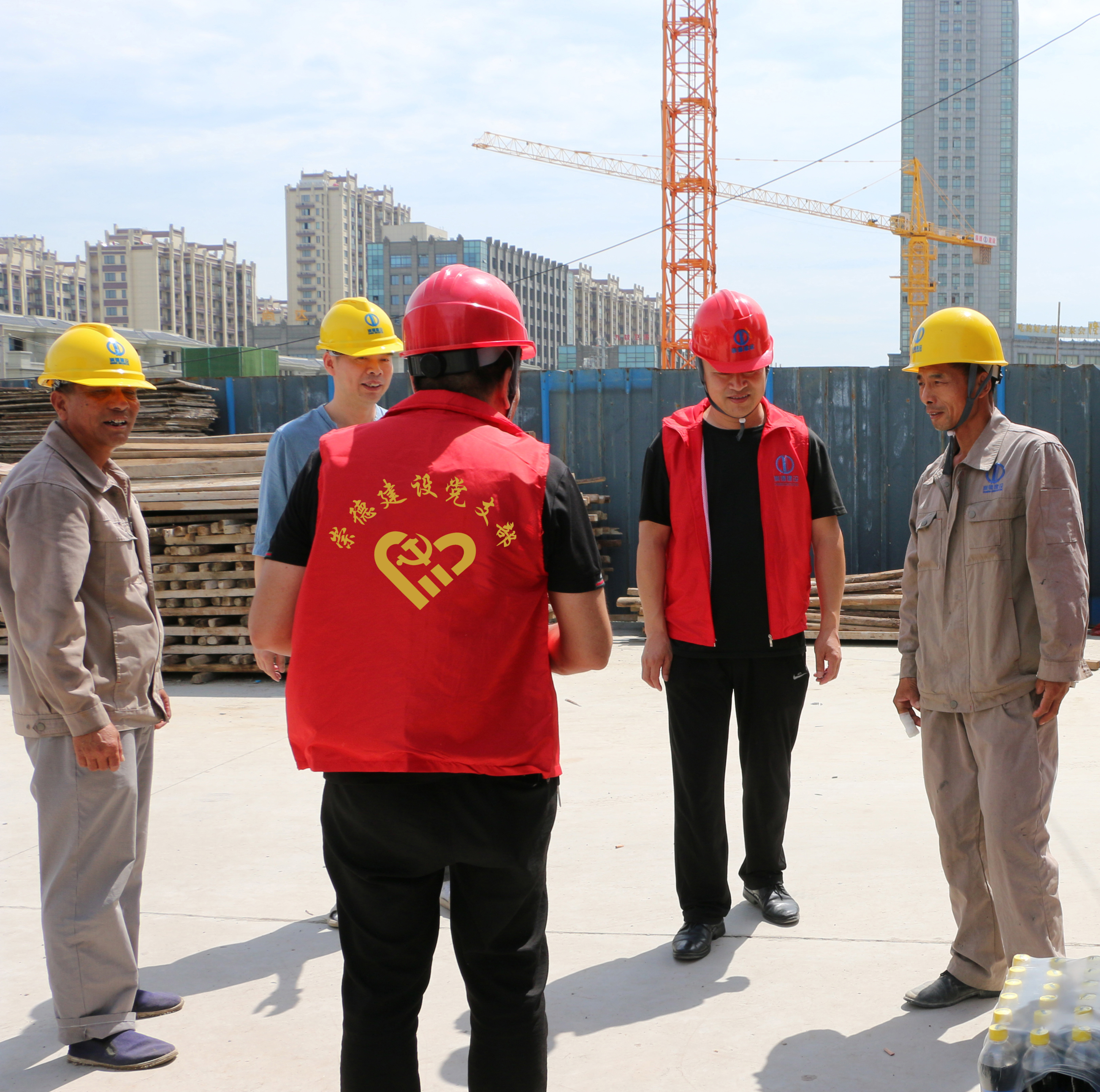 自8月7日以來,由公司黨支部書記柴永根、質(zhì)安副總沈建民等部門負責人組成的高溫慰問小組,一站接一站赴工地,看望慰問奮戰(zhàn)在高溫一線的施工人員,詢問高溫作業(yè)情況,為他們送去高溫慰問品,感謝他們戰(zhàn)高溫、斗酷暑,堅守崗位。