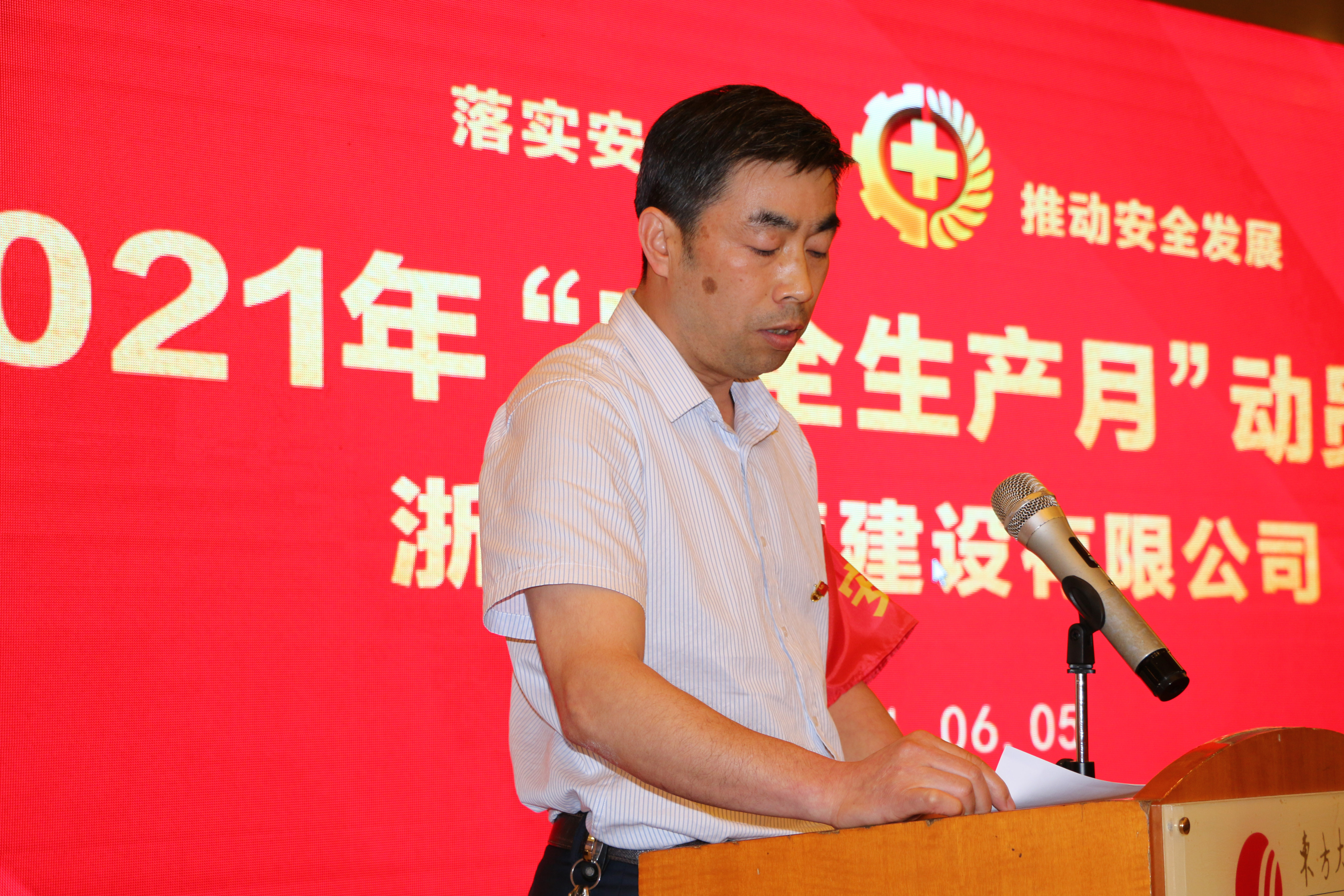 浙江崇德建設有限公司技術負責人、總工程師陳俊杰從技術層面出發進行發言。要按照總體部署和工作安排,切實抓好在建工程的質量、安全、文明施工、進度管理,有計劃、有步驟,分階段組織好、開展好安全生產月的各項活動;多措并舉營造安全生產的濃厚氛圍,積極動員全體職工將思想和行動統一到中央、省、市關于安全生產工作的各項部署上來;全面開展安全隱患排查治理,做到檢查到位、整改到位;結合夏季高溫、臺風等惡劣天氣,組織開展安全演練,完善應急救援預案,進一步增強企業處置安全生產事故的應急能力;對安全生產月活動進行總結,真正達到以“月”促年的目的,使“紅線意識”付諸于實際行動,讓“以人為本”的安全理念深入人心。