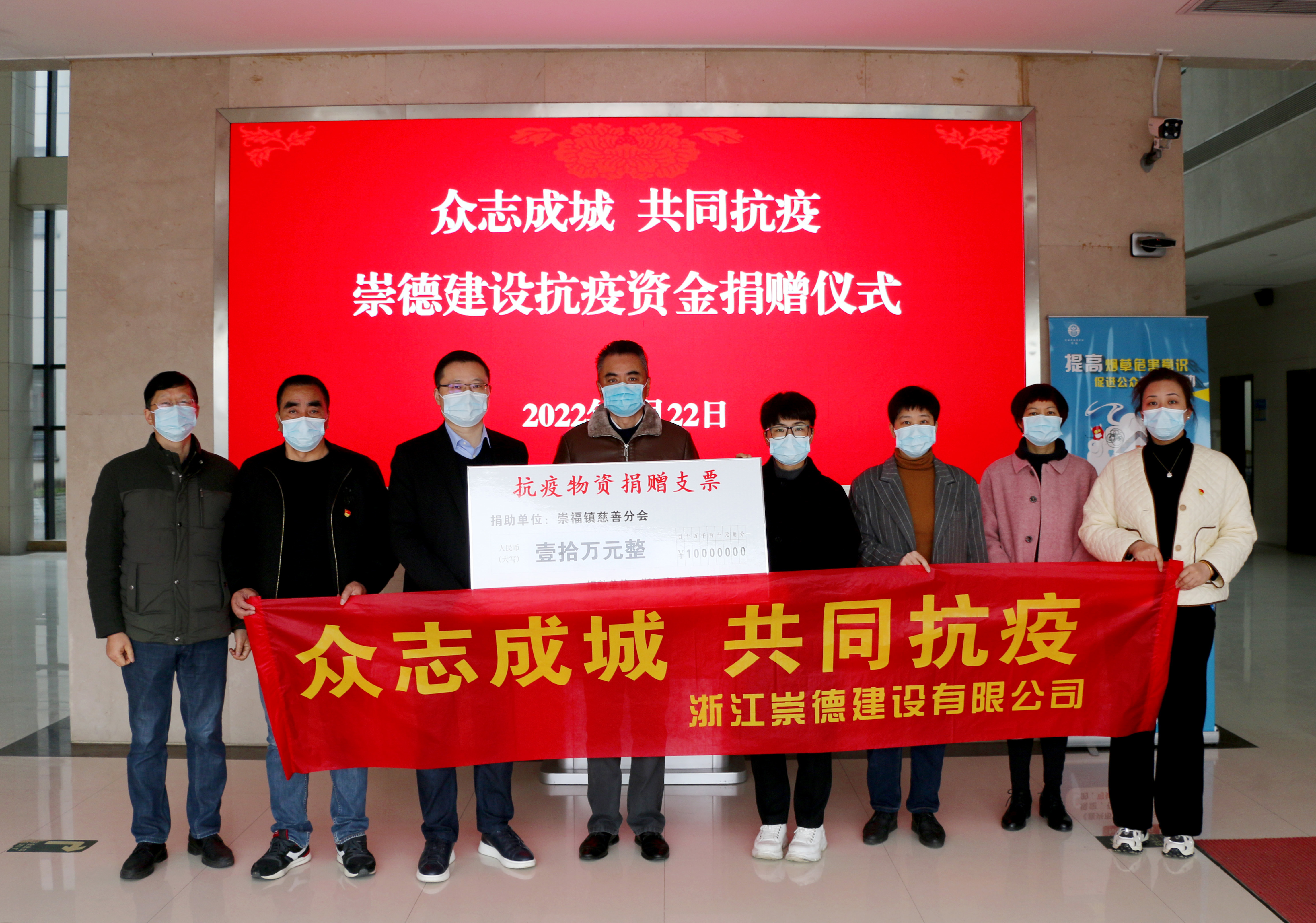 共戰(zhàn)疫情,有你有我。2022年3月22日,浙江崇德建設(shè)有限公司抗疫資金捐贈儀式在崇福鎮(zhèn)鎮(zhèn)政府大廳內(nèi)舉行。桐鄉(xiāng)市慈善總會會長沈濟(jì)賢、崇福鎮(zhèn)黨委副書記沈亞平、浙江崇德建設(shè)有限公司董事長郁振華等出席。