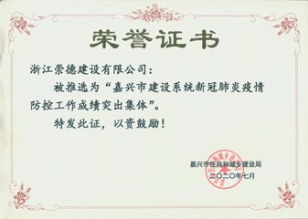 2020年嘉興市建筑業新冠肺炎疫情防控工作先進單